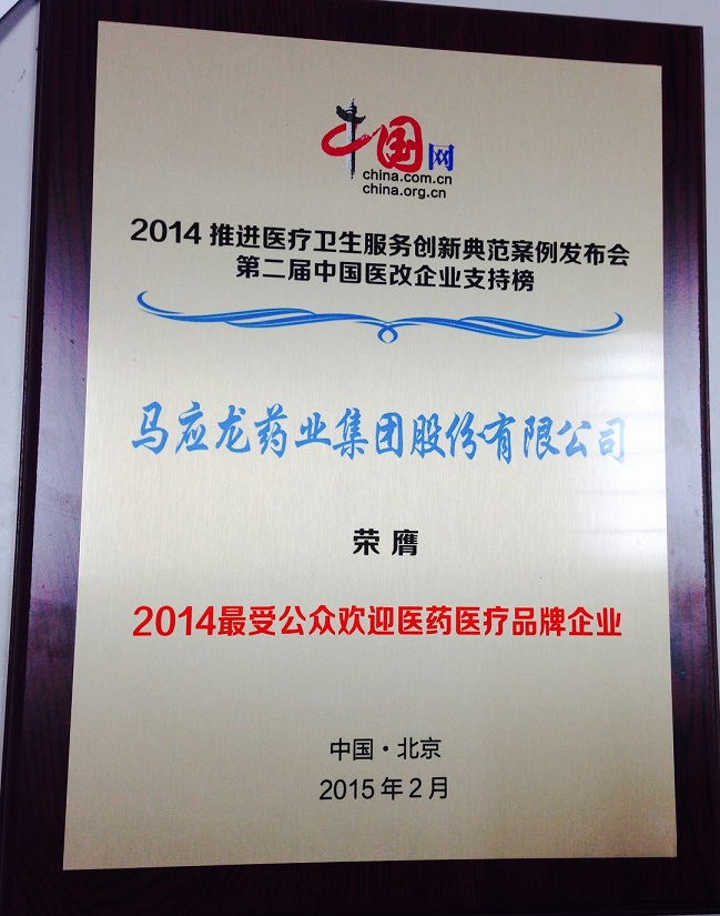 ● 马痔膏获2015湖北省医药行业外用药优秀产品品牌